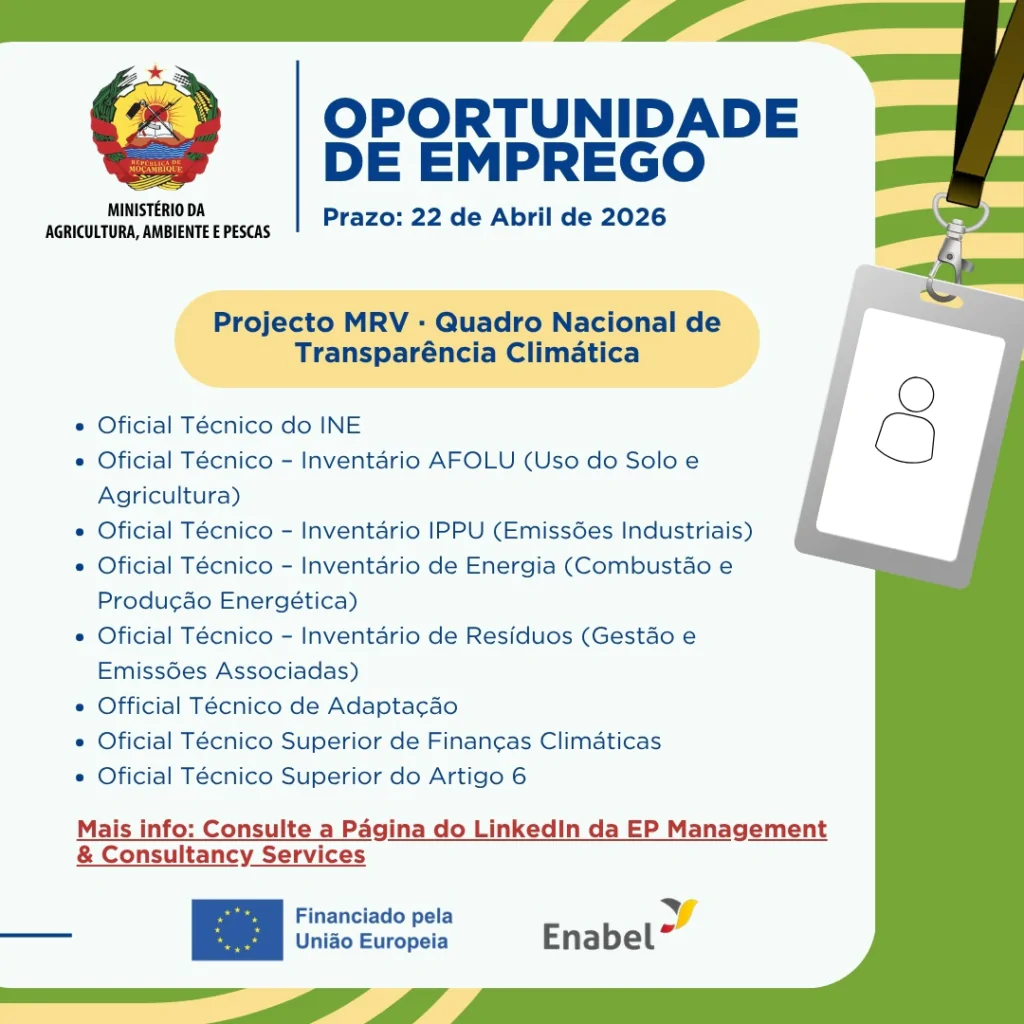 O Governo de Moçambique, com o apoio da Agência Belga de Desenvolvimento (Enabel) e financiamento da União Europeia, está a recrutar profissionais de elite para fortalecer a governação climática do país. O objetivo é transformar a ambição climática em dados reais e mensuráveis para cumprir o Acordo de Paris.